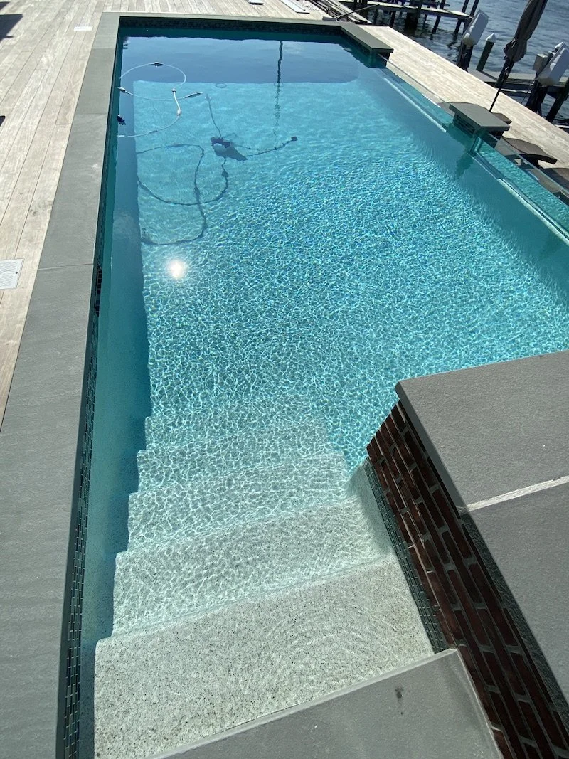 Signature Matrix is a beautiful pebble finish for your pool. This dynamic blend of hand-selected pebbles and other aggregates creates the most durable finish, adding just a touch of traction for active pool goers. With a variety of texture options, creating a lagoon-like environment that complements natural surroundings is a breeze. Signature Matrix comes with a 15 year manufacturer warranty from WetEdge Technologies, click here to learn more.